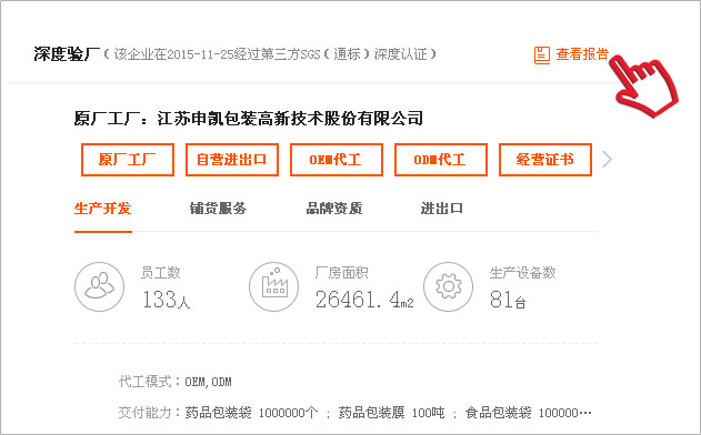 申凱包裝做為一家多年生產經驗的軟塑包裝廠家,純鋁復合膜與鍍鋁復合膜的生產產上都有成熟的生產工藝,具備食品包裝資質,藥用包裝注冊證等多種行業內的標準認證,10萬級潔凈生產車間,嚴謹的管控系統。